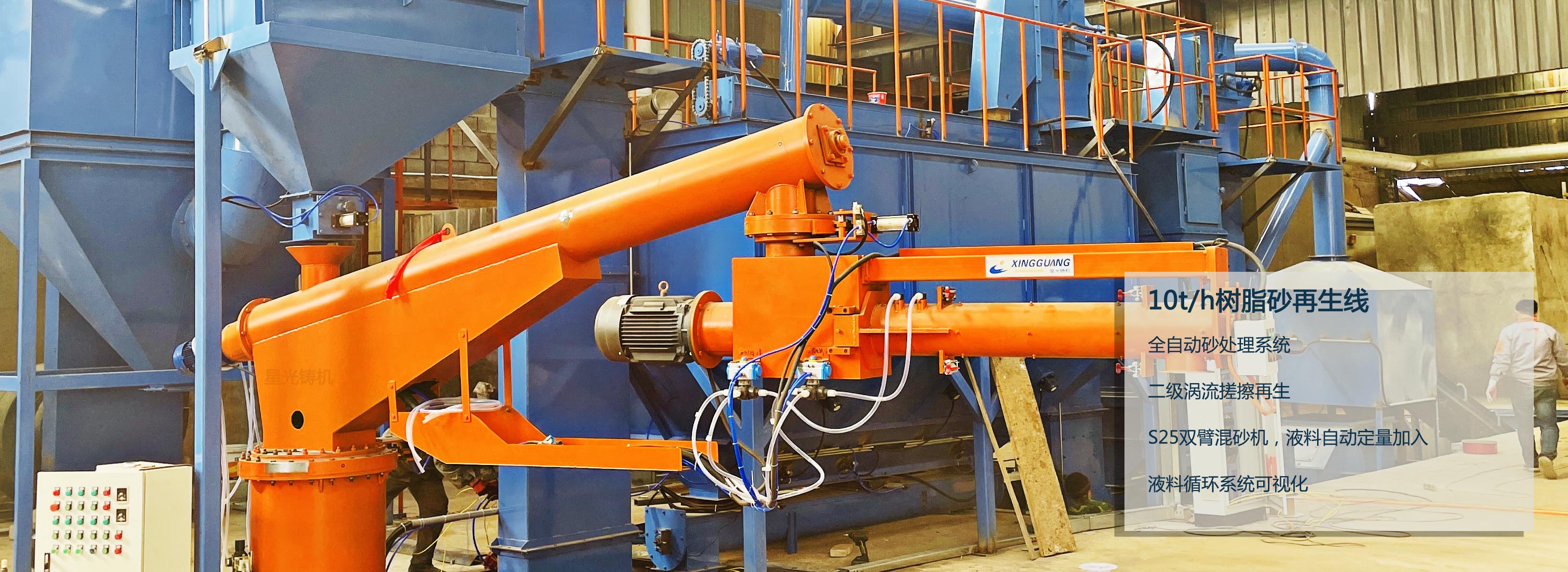 ????????主要產(chǎn)品:樹脂砂線、傾斜滾筒式拋丸機、自動造型線